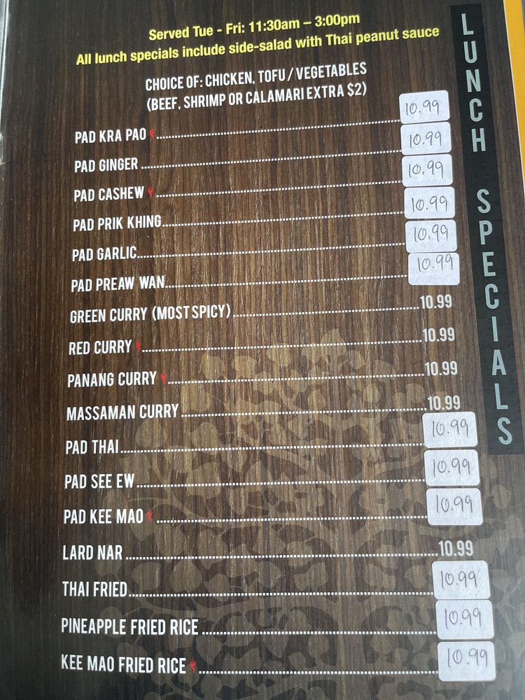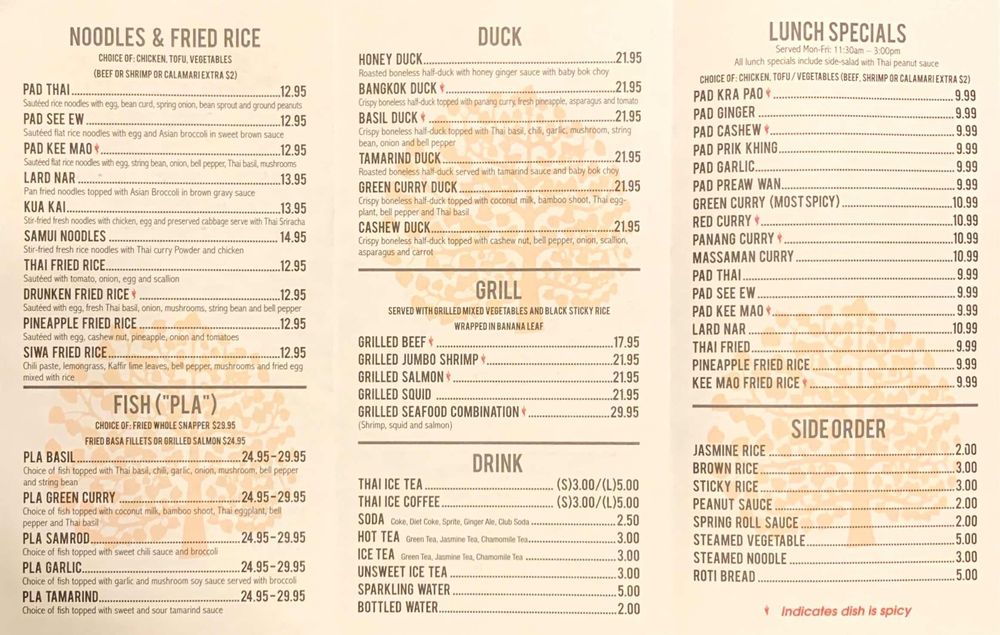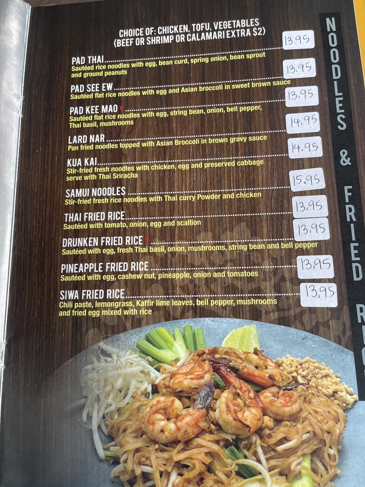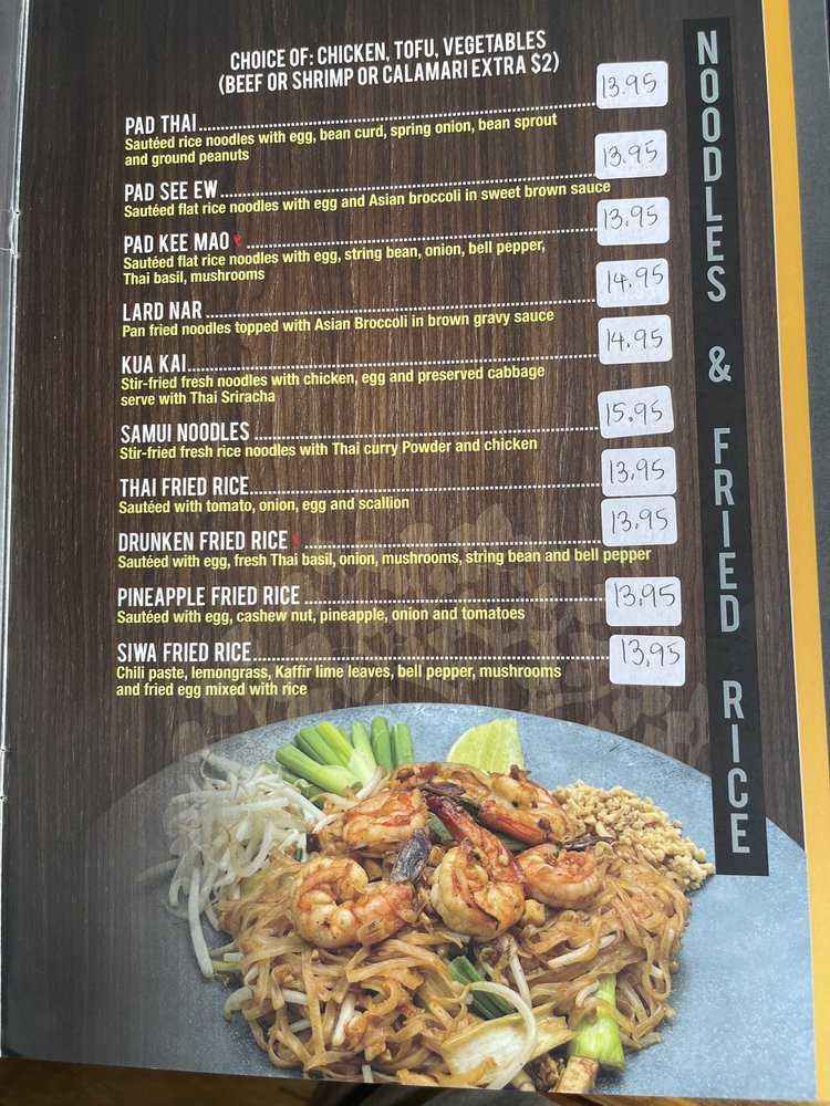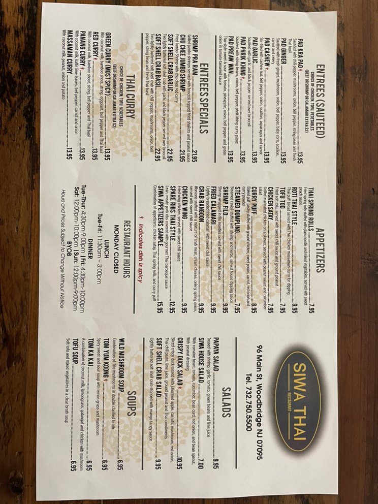 SIWA Thai Restaurant, located on 96 Main St in Woodbridge, NJ, offers a variety of delicious Thai dishes in a casual and trendy setting. The menu includes flavorful appetizers like Fried Calamari and Roti Thai Style, refreshing salads such as Crispy Duck Salad and Soft Shell Crab Salad, and comforting soups like Tom Yum Koong and Tom Ka Kai. Customers have praised the attentive service, cozy ambiance, and tasty food at SIWA Thai Restaurant. The portions are generous, with dishes like Siwa Fried Rice and Green Curry earning high praise for their bold flavors. The Thai tea is a standout beverage option, available in regular and extra-large sizes. Overall, SIWA Thai Restaurant is a must-visit for anyone craving authentic Thai cuisine in a welcoming atmosphere.